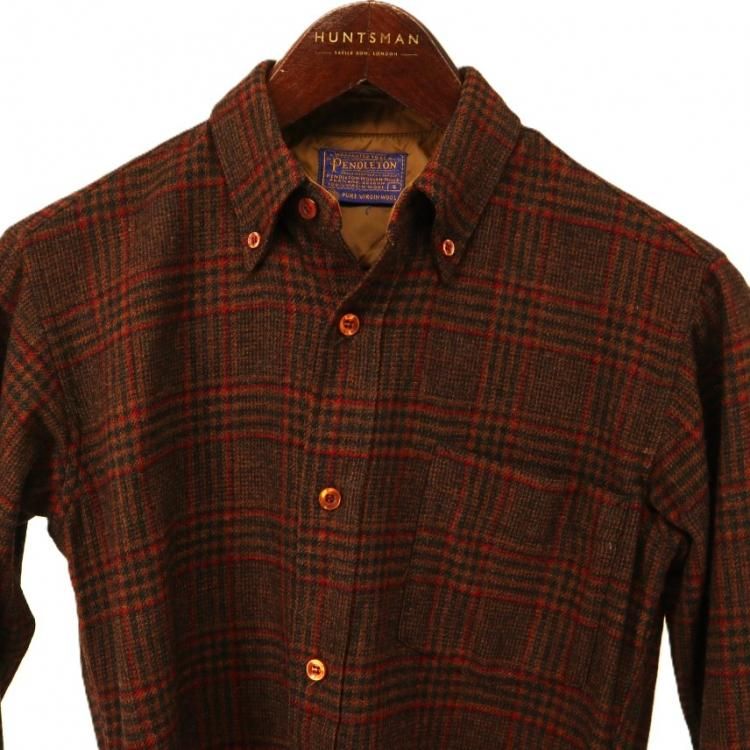 コメント:60年代のヴィンテージPENDLETON社製ウールシャツです。 ブラウン×ネイビー×レッドのかなり渋い色合いですね。 ボタンダウンで品よく着ることができるシャツになります。