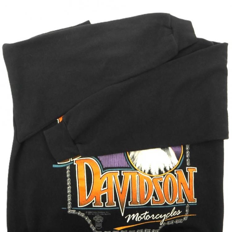 古着 80's USA製 HARLEY-DAVIDSON ハーレーダビッドソン チェーン枠プリント ブラック スウェットシャツ / メンズXL