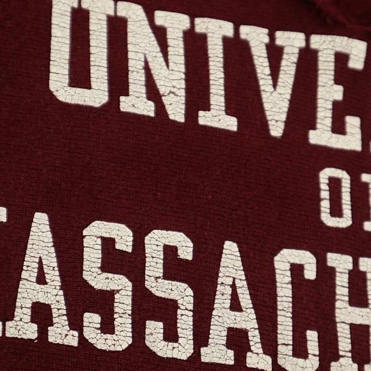 コメント:90年代Champion社製リバースウィーブのスエットフーディーです。 マサチューセッツ大学の物で、スクールカラーのマルーンボディ。 胸にバランスよく3段でプリントが入っています。 チャンピオンのフードは小さめなので、パーカーだと襟元が切られている事が多いですよね。 自分で切るのが抵抗ある方は、切られている物を選べば着用しやすく、しかもこなれた感じにも見えます。