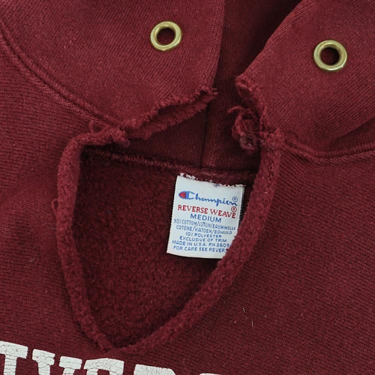 古着 90's USA製 Champion チャンピオン REVERSE WEAVE 刺繍タグ MASSACHUSETTS大学 3段プリントスウェットパーカー / メンズM