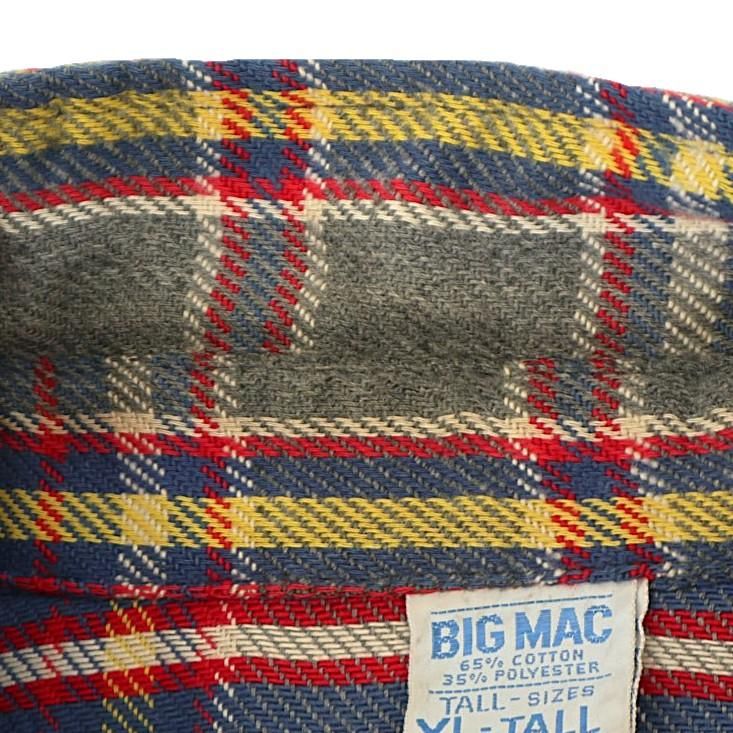 古着 70’s ビンテージ BIG MAC ビッグマック 単色タグ 皿ボタン グレー×ブルー チェック 長袖 ヘビー フランネルシャツ / メンズXL