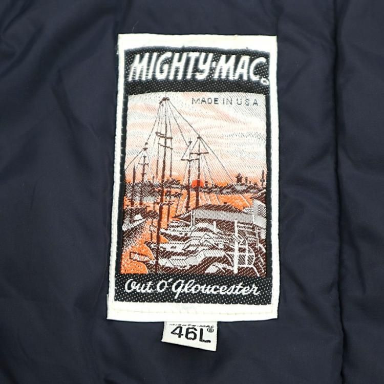 コメント:80年代マイティーマック の ハーフコートです。 存在感のあるT字ジップに、腰の太径ドローコードとストッパー、ゆったりしたシルエットにはエレガントさも感じます。 ボリュームあるパファージャケットですが素材表記が無く、おそらく中綿はポリエステルだと思われます。 これはシンプルにホワイトパンツと合わせて欲しいです。