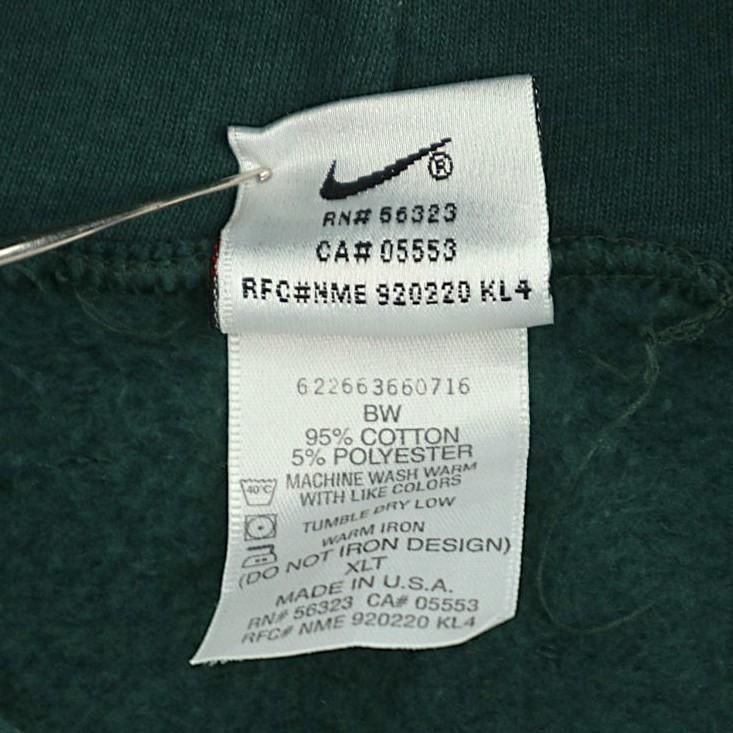 古着 90's~00's USA製 NIKE ナイキ 白タグ Swoosh スウッシュ刺繍 グリーン スウェットパーカー / メンズXL