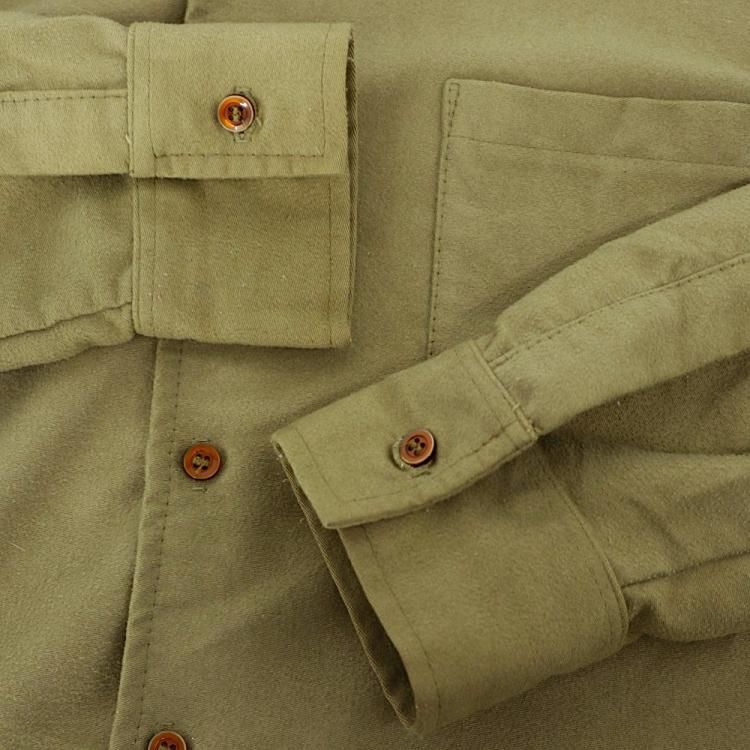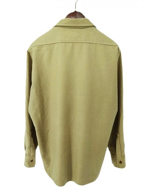 古着 80's イングランド製 BARBOUR バブアー 2ワラントタグ カーキ モールスキン 起毛 長袖シャツ / メンズL