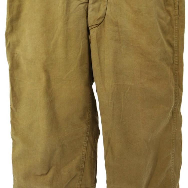コメント:40年代のヴィンテージM-41チノパンツ ウールライナーです。 両玉縁仕上げのポケットに、インシーム・アウトシーム共にダブルステッチのM41のディテールにウールのライナーが付いた希少モデル。 M41自体少ないのに、ライナーモデルは本当に出てこないです。 真冬にチノパンでは寒くて穿けなかった方はいかがでしょうか。