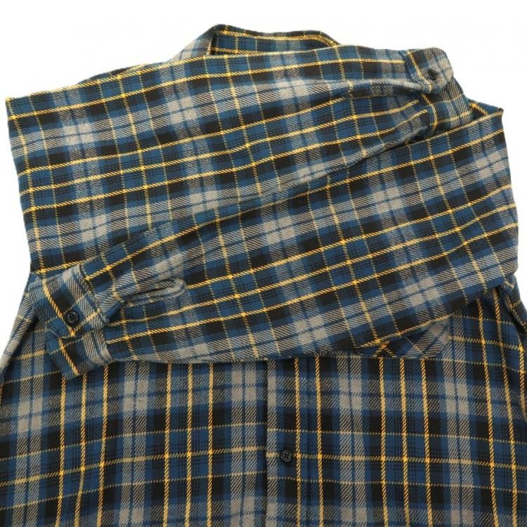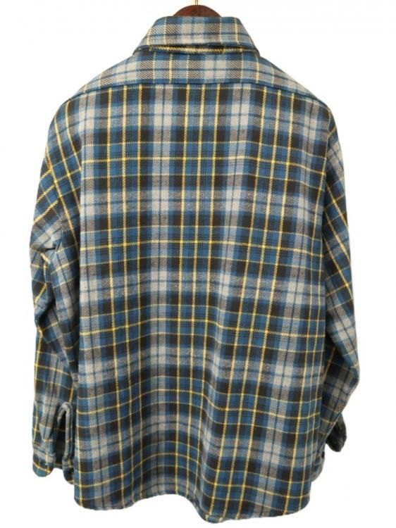 コメント:80年代 Mr.Leggs のヘビーネルシャツです。 グレー×ブルー ×ネイビーの寒色系にイエローが効いたチェックのコットンフランネル。 フラップ付きポケットに黒の皿ボタン。 好配色でコットン100%のアメリカ製だと刺さる方も多いのでは。
