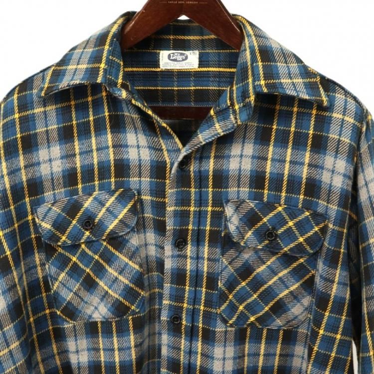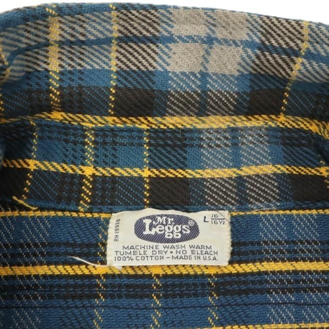 古着 80's USA製 Mr.Leggs 皿ボタン グレー×ブルー チェック コットン 長袖 ヘビー フランネルシャツ / メンズL