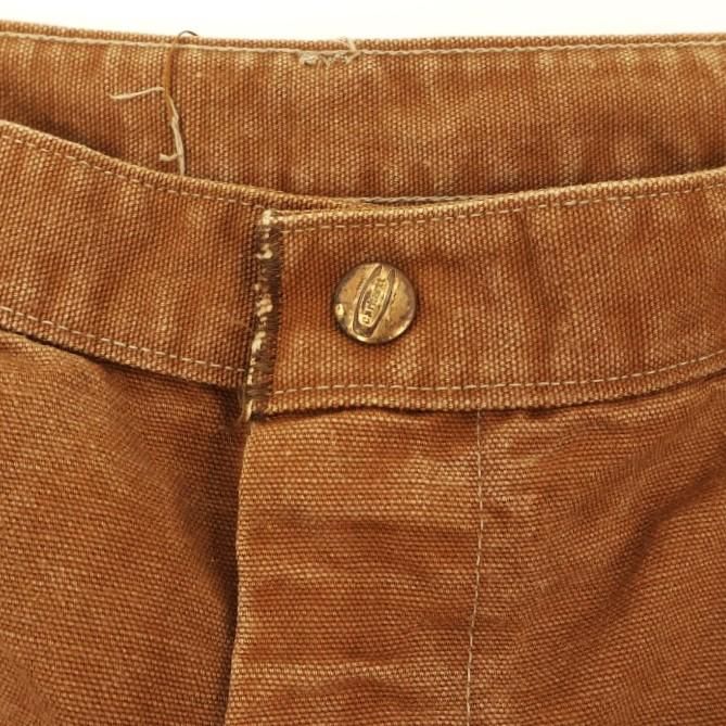 古着 60's~70's USA製 ビンテージ Carhartt カーハート デカCボタン プリントタグ ダブルニー ブラウン コットンダック地 ペインターパンツ / W37インチ相当