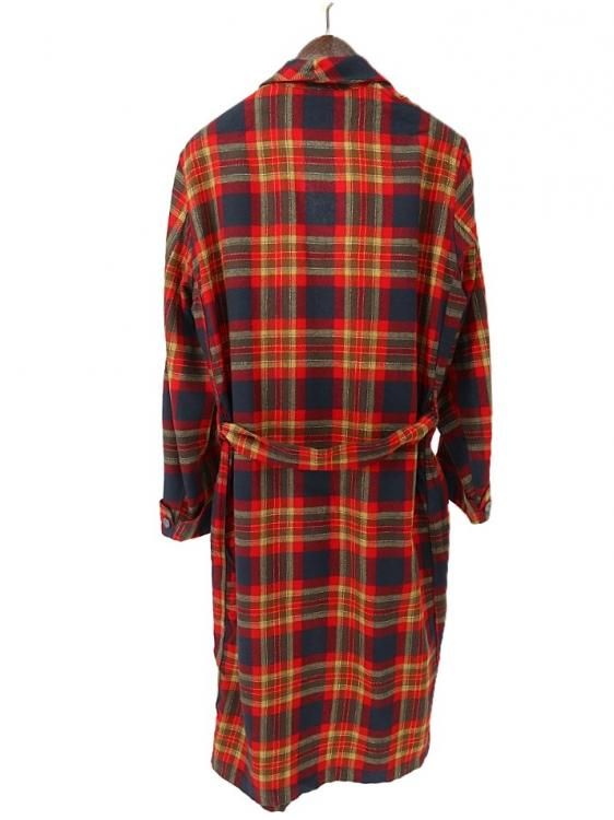 コメント:60年代のヴィンテージ ペンドルトンのウール ガウンコートです。 紺×赤×若草色の暖色系チェック柄。 ルームウェアはもちろんの事、ちょっと肌寒い時のライトアウターや、コートのインに着こんで裾からチェックが見えるのも面白いと思います。