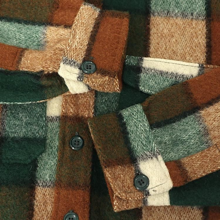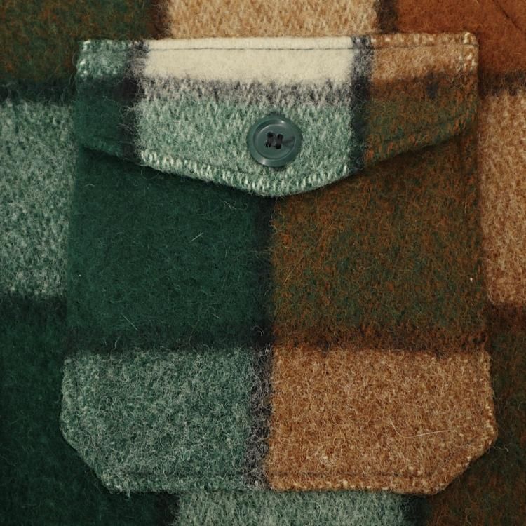 コメント:70年代ヴィンテージ ウールリッチのシャツジャケットです。 厚手のウール素材に茶×深緑×白のレトロな雰囲気のチェック柄。 スラックスに合わせても雰囲気良さそうです。