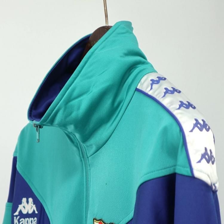 コメント:90年代カッパ社製 トラックジャケットです。 FCバルセロナ 92-95年のアウェイ用ジャージになります。 ターコイズカラーにブルーとレッドの切替し、腕にはお馴染み OMINI ロゴがラインで入ります。 バルサファンならずとも、このジャージには惹かれますね。