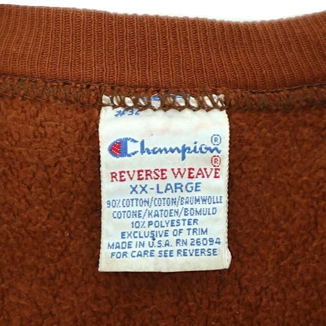 古着 90’s Champion チャンピオン REVERSE WEAVE 刺繍タグ レアカラー ブラウン 無地 ビッグサイズ スウェットシャツ / メンズXXL