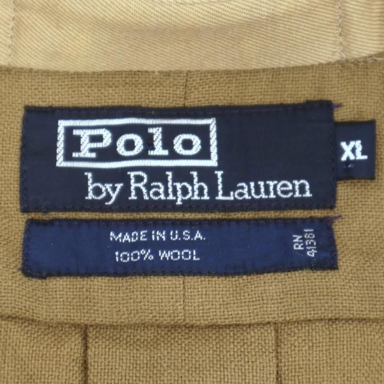 古着 90’s USA製 Polo by Ralph Lauren ポロ ラルフローレン マチ付き ベージュ系 ウール バンドカラー 長袖シャツ / メンズXL