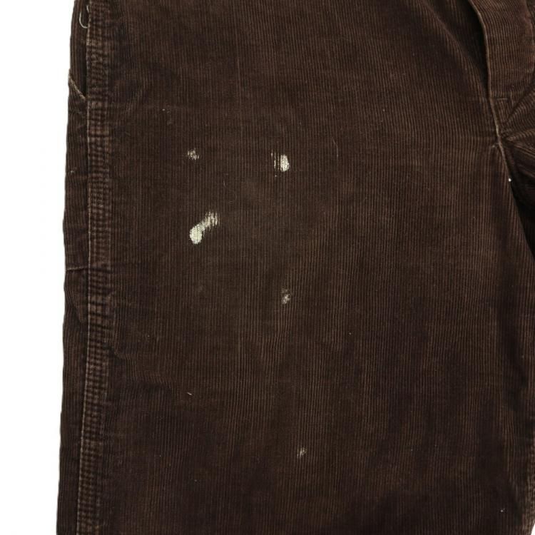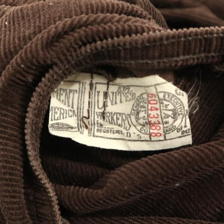 コメント:70~80年代のヴィンテージ リーのオーバーオールです。 コーデュロイ生地で仕立てられ、温かみと可愛らしさがあるオーバーオール。 チョコレートの様な焦げ茶色だと、オフホワイトのニットやピンクのカーディガンなど合わせやすそうです。 ペンキ汚れもコーデュロイだと雰囲気が違いますね。 ヒップポケットにユニオンチケット付き。