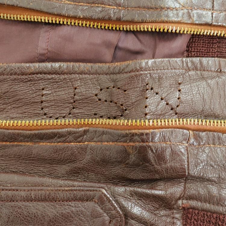 コメント:50年代のヴィンテージ レザーフライトジャケットです。 ゴートスキンにムートン襟が特徴で、前立てにはパンチングでUSNと入ります。 エイジングしたレザーが雰囲気良く、オーラがありますよ。