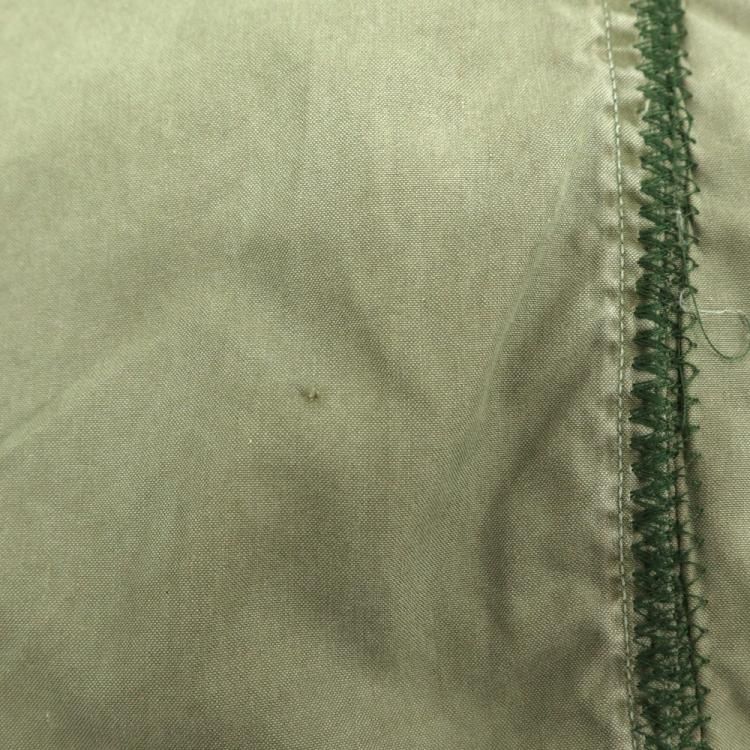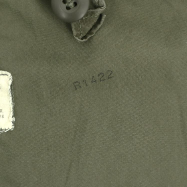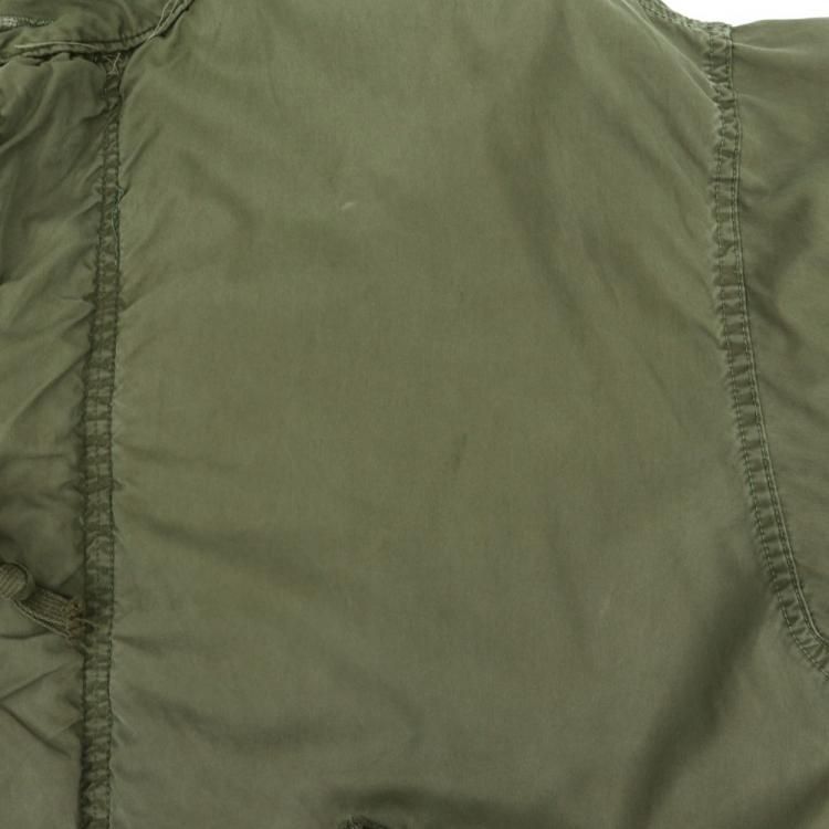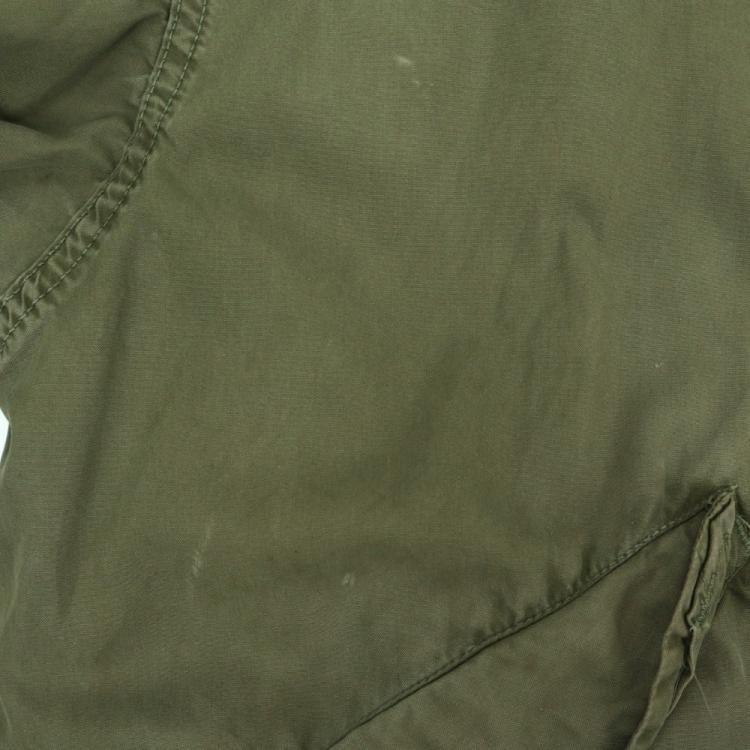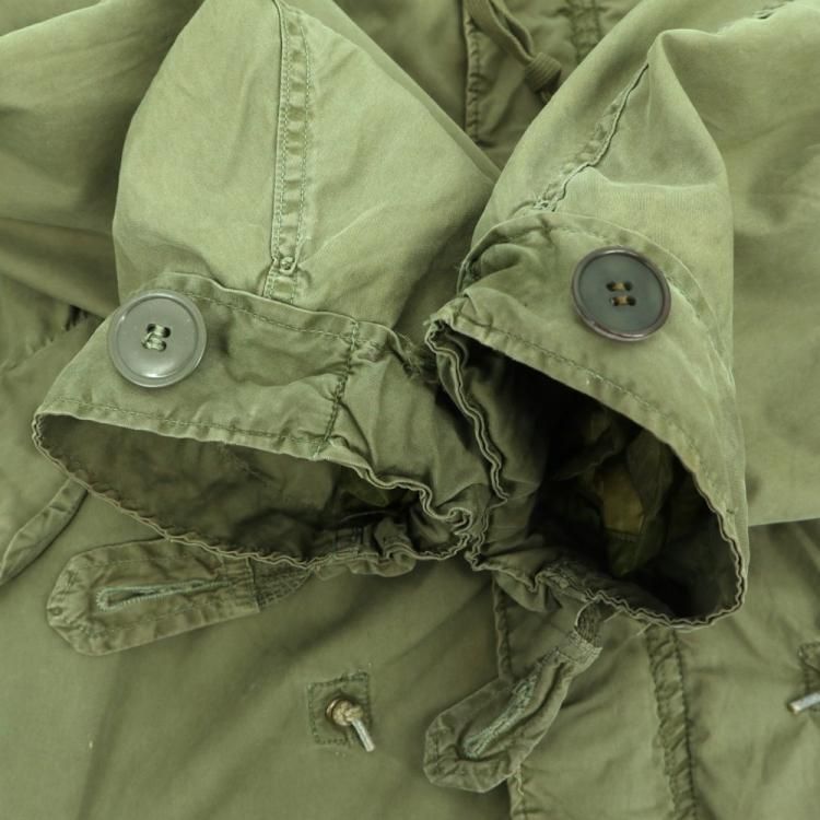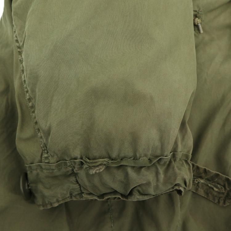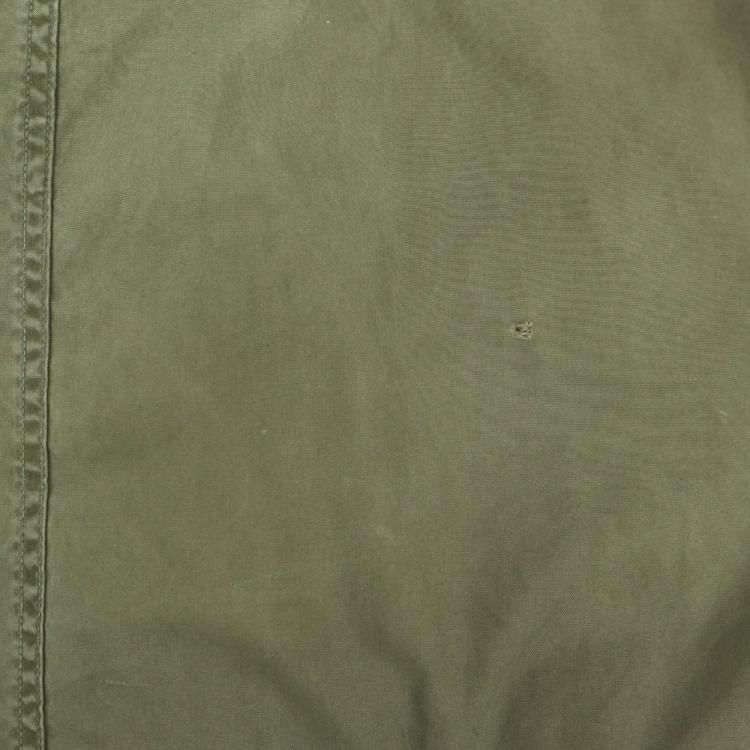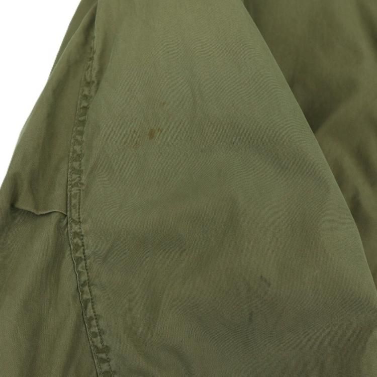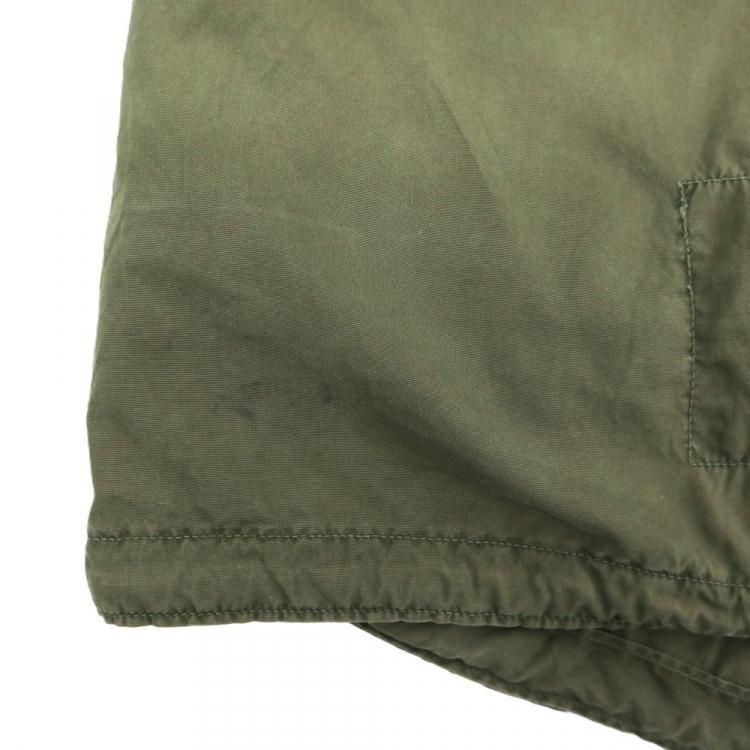 バックの裾に補修があります。 左袖のボタンが交換されています。 全体的に使用感・色褪せがあり、所々に薄汚れ・小穴・シミ・擦れ・傷があります。 ライナーの裾に補修があり、一番下のボタンホールが塞がれています。 ライナーに汚れがあり、所々にステッチ切れがあります。