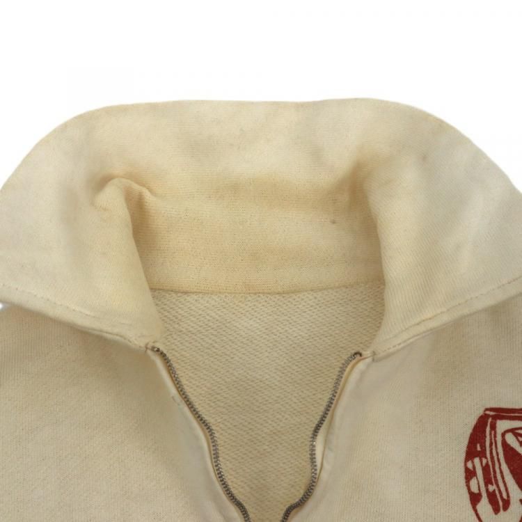 古着 50's ビンテージ ハーフジップ コの字留 フラタニティ フロッキープリント スウェットシャツ / メンズM相当