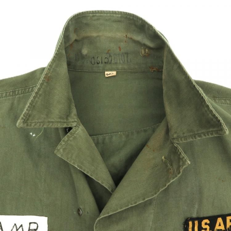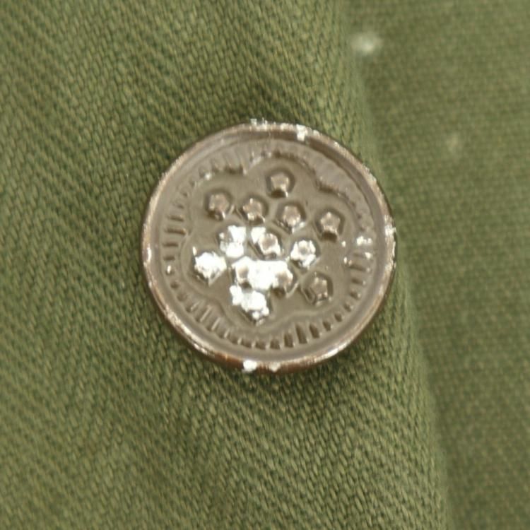 首元ボタンの欠損、もう一つのボタンに錆びがあります。 両肩にダメージ、首元に書き込みがあります。 全体的に使用感・色褪せ・薄汚れがあり、所々に小穴・黄ばみ・汚れ・擦れがあります。