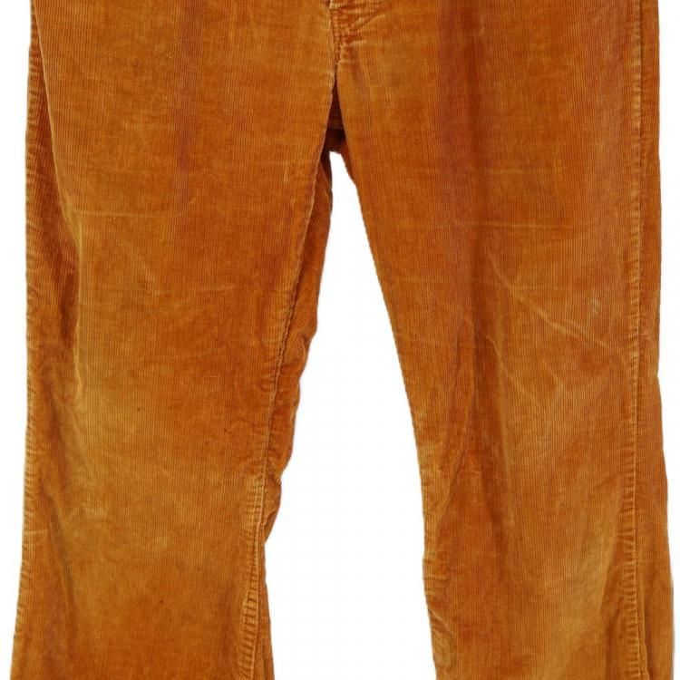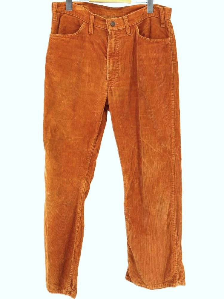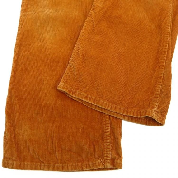 コメント:70年代のヴィンテージ リーバイスの フレアコーデュロイパンツです。 こちらはまだ内タグが付く前のポケットスレーキに印字された時代の物で、おそらくビッグE期の物。 色は明るめの茶色。 僅かにフレアしたブーツカットが綺麗なシルエットです。