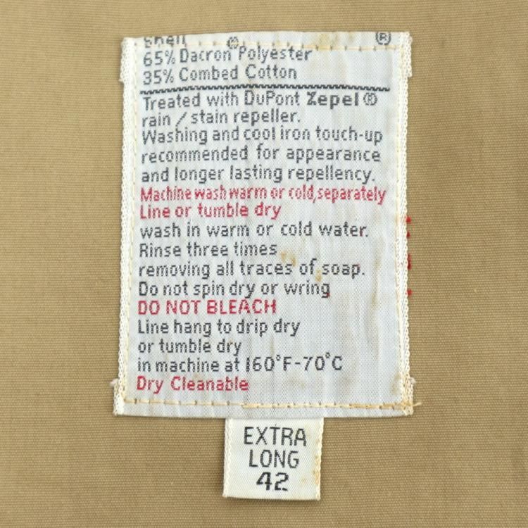 コメント:70年代のヴィンテージ ブルックスブラザーズのトレンチコートです。 ベージュ系カーキ色のハリのある生地に水牛ボタンを使用した高級感のあるコート。 ビジネスシーンで活躍してくれることでしょう。 ウールのライナー付きなので秋・冬・春の3シーズン着用可能です。
