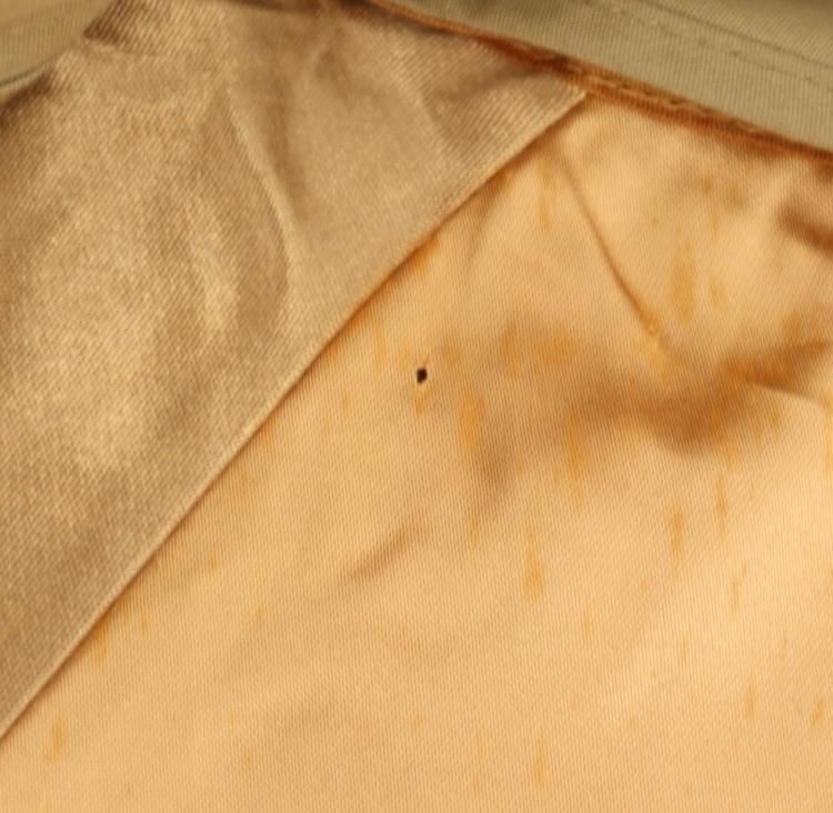 多少の使用感があり、所々にシミ・黄ばみ・汚れ・擦れがあります。 ライナーのサテン地に小穴があります。
